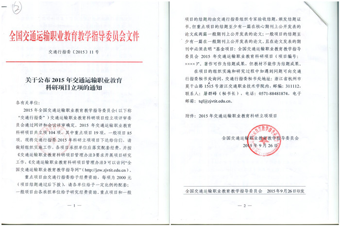 我院4个项目顺利通过2015年交通运输职业教育科研项目立项审批