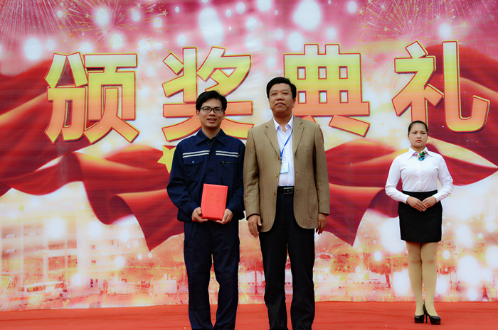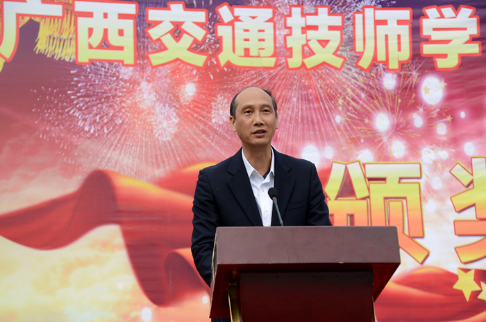 钟修仁院长为第五届广西技工院校技能大赛我院获奖教师宋庆营颁奖