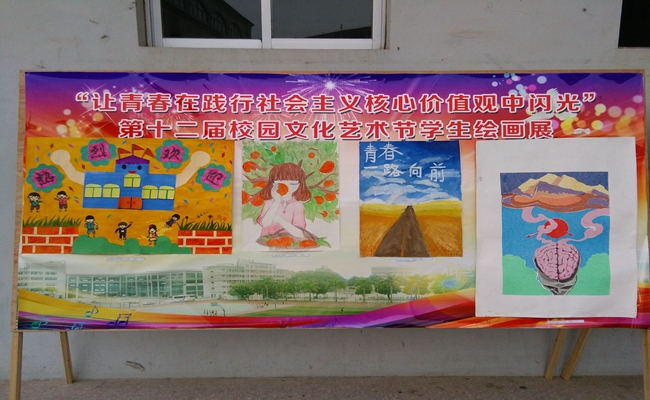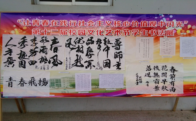2015年11月,我院开展了“让青春在践行社会主义核心价值观中闪光”学生书画摄影比赛并进行展出。比赛在全院进行,共收得学生书法作品118幅,绘画作品128幅,摄影作品140幅;并分别评比出了书法比赛一等奖两名,二等奖三名,三等奖五名,优秀奖五名。绘画比赛一等奖两名,二等奖三名,三等级五名,优秀奖五名。摄影比赛一等奖两名,二等奖三名,三等奖五名,优秀奖六名。