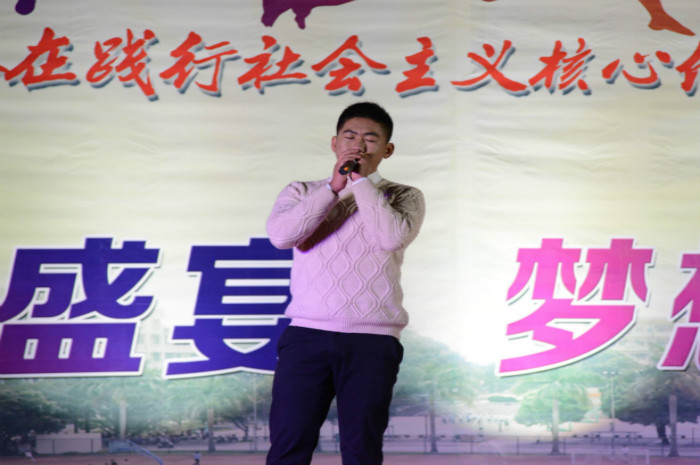 12月17日晚,我院高峰校区成功举办以“青春盛宴,梦想舞台”为主题的校园卡拉OK决赛。从预赛层层选拔出的13名优秀参赛选手为全体师生带来了一场听觉盛宴。比赛活动精彩纷呈,既有最新流行歌曲的激情演唱,又不乏经典歌谣的深情演绎。由邕武校区2014级营销1班优秀歌手杨积丽作为嘉宾带来的歌曲《再见中国海》将现场气氛推向高潮。现场气氛活跃,师生群情高涨,挥动手机闪光灯为参赛选手加油助威,充满了青春的生机与活力。比赛最后,高峰校区老师梁永超为学生献唱《阿飞的小蝴蝶》,同学们欢呼声掌声不断,充分展现了我院师生团结友爱,融洽和谐的校园氛围。