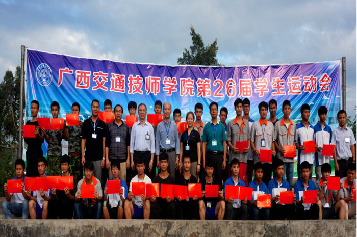在激昂的音乐声中,学院领导为此次运动会表现优异的共26名运动员以及10个班级颁发奖状,其中廖森同学打破了我院男子前掷实心球尘封了4年的校运会记录。每次颁奖,场下都响起连绵不断的掌声,以表示对获奖人员的肯定以及祝贺。