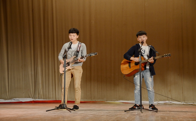 舞台上,同学们同场竞技,各施所长,或深情演绎经典怀旧曲目,或诠释动感青春舞曲,多种音乐形式展现了各自独特的歌声,表达了选手们对音乐及人生的感悟;丰富的舞台表现力,也体现了选手们朝气蓬勃的精神风貌和较强的艺术感染力。