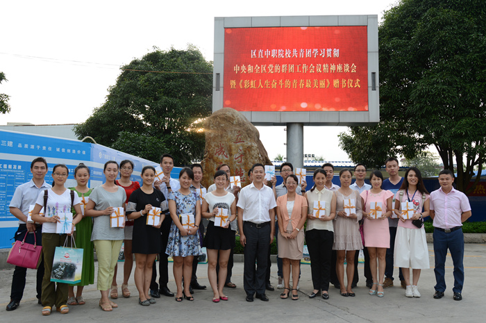 广西区直中职院校共青团学习贯彻中央和全区党的群团工作会议精神座谈会暨《彩虹人生——奋斗的青春最美丽》 赠书仪式在我院举行