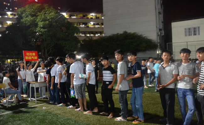 游园活动还未正式开始,游戏点前就已经大排长龙。整个活动现场竞争激烈,足球场一片欢腾。在所有游戏中最受欢迎的是“套圈”游戏,每个人都摩拳擦掌,跃跃欲试,想要套中自己心爱之物,套圈游戏现场充满了同学们给同伴们的掌声和欢呼声。除此之外,“两人三足”游戏现场的人也是络绎不绝,同学们呼朋引伴,迫不及待地给自己绑上脚绳,一遍一遍的练习,约定口令,为了在比赛中能够获胜,而同手同脚的同学们,更是引得现场欢声笑语一片。幸运转盘、定距投准、易拉罐积木、投掷飞镖、单脚跳绳、青蛙跳水、掌上明珠、小小保龄球、抢椅子,每个游戏都让同学们沉浸其中,尽情的享受这欢乐的时刻。