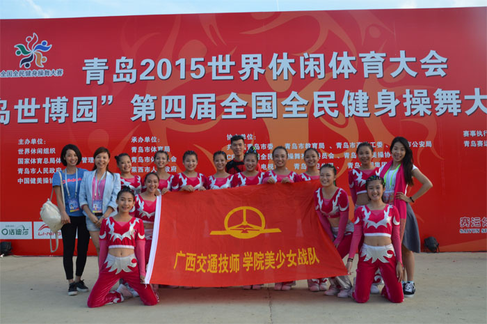 比赛中,我院“美少女战队”啦啦操队发扬了努力拼搏、刻苦训练的顽强作风,动作完成得规范到位。这是我院啦啦操队首次参加国家级的健身操舞比赛,即取得了出色成绩,在高中组别中的规定动作“有氧舞蹈五级”、自编动作“轻器械健身操”两个项目斩获一等奖,为学校争得了荣誉。本次比赛的指导老师刘飞英、黄振口、周丽丽、韦盈盈也获得了“年度优秀教练员”称号。