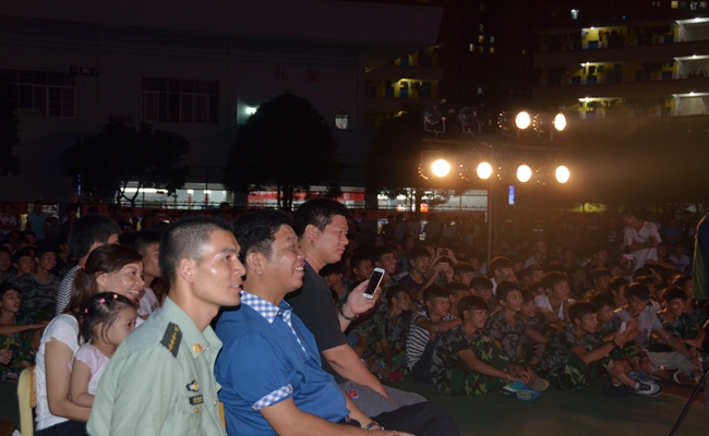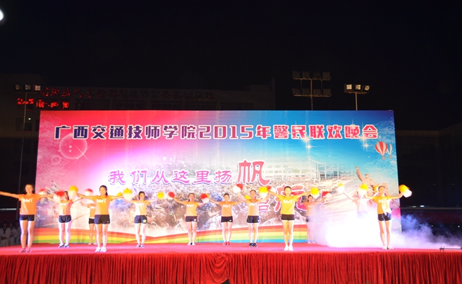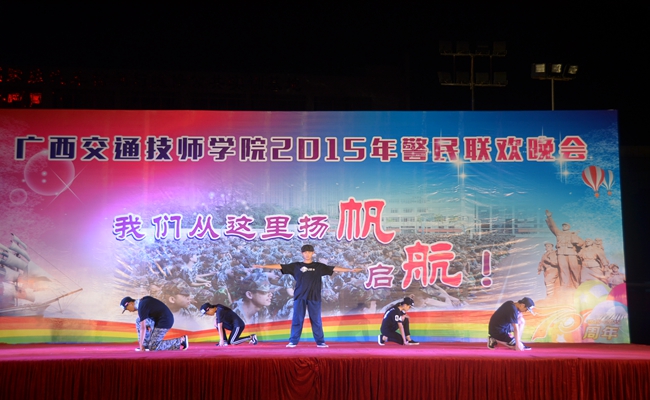 9月10日晚,我院2015年警民联欢晚会在学院足球场举办。学院钟修仁院长出席晚会并致词,广西武警总队直属支队队长覃振周、学生工作处领导、各班班主任及教官、2015级新生们观看晚会。