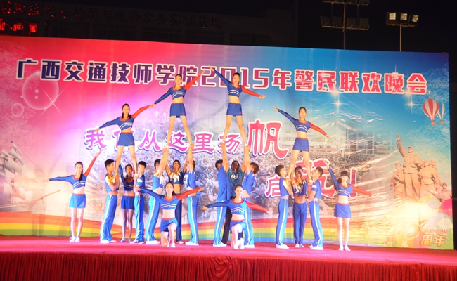晚会在动感十足的啦啦操花球表演中拉开了帷幕,街舞协会活力四射的《快乐汽车人》、教官代表带来的独唱《军中绿花》,2015级幼儿教育2班欢快活泼的舞蹈《快乐女孩》、汽车商务协会优美的舞蹈《青花瓷》、长堽校区街舞协会热情奔放的《起源》、舞蹈协会带来的《恰似白月光》、许晓清老师带来的动听的歌曲《晚风吹过哨塔》等节目逐一登场,为师生们呈现一场精彩的晚会 。最后,啦啦操协会带来了技巧表演,娴熟的动作,炫目的技巧,再次将晚会推向了高潮,赢得了观众们雷鸣般的掌声。