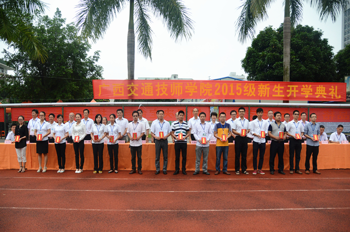 8月31日上午,我院在足球场隆重举行2015级新生开学典礼,欢迎邕武校区2600多名学生进入广西交通技师学院这个大家庭。我院领导班子成员以及相关部门中层参加了开学典礼。钟修仁院长在会上介绍了国家对技能大赛的重视和支持,寄语新生学习技能、努力钻研,为自己的梦想努力和拼搏。
