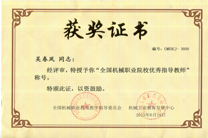 经过3天的激烈角逐,我院郑树贤、李瑞宇两位参赛选手在比赛中沉着应战,凭借过硬的专业能力、扎实的基本功及超群的专业实力,取得了娇人的成绩:郑树贤荣获本次比赛的一等奖(第二名)(指导老师:吴春凤),李瑞宇荣获三等奖(指导老师:黄海), 吴春凤老师荣获“全国机械院校优秀指导教师称号”。我院荣获一台“V-30车博仕汽车故障电脑诊断仪”奖励。