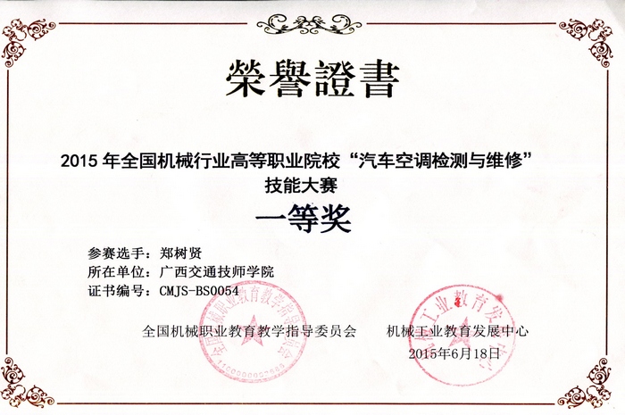 我院在2015年全国机械行业高等职业院校“汽车空调检测与维修”技能大赛中再续辉煌
