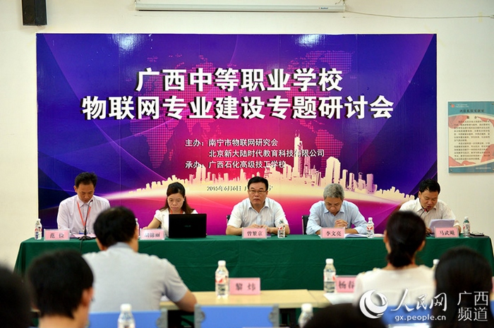 6月6日,广西中等职业学校物联网专业建设专题研讨会在广西石化高级技工学校举行,参加研讨会的行业、企业和院校代表50多人,其中参会中职院校共11所,我院信息商务系黄泳霖、李静懿、曾远荣三位老师参加了本次研讨会。