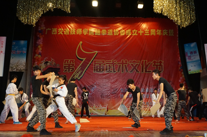 6月6日,我院第七届武术文化节在学院礼堂举行,吸引了区内25所院校的散打、跆拳道、搏击等协会成员500多人到场参加。