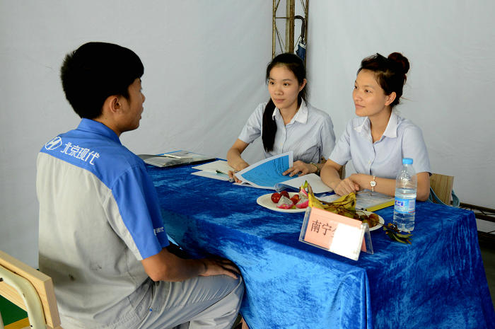 招聘开始,来自全区的8家北京现代4S店代表进行了企业概况、招聘岗位的信息介绍后,北京现代班的18位同学逐一进行了精彩的自我简介。在4S店企业代表和同学们相互有了一定的了解之后,双选环节正式开始,同学们根据就业意向来到各企业展位面试,和企业代表真诚交流。同学们在招聘过程中的精彩表现得到了4S店代表的高度认可。