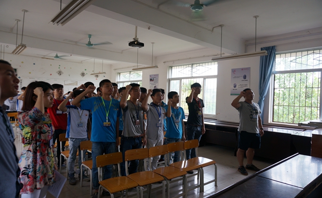 同学们在老师代领下进行成人宣誓