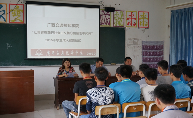 5月27号下午,我院高峰校区100多名学生代表在“让青春在践行社会主义核心价值观中闪光”2015年学生成人礼宣誓仪式上喊出了自己十八岁成人誓言。