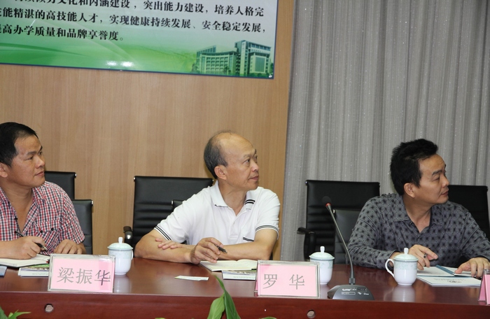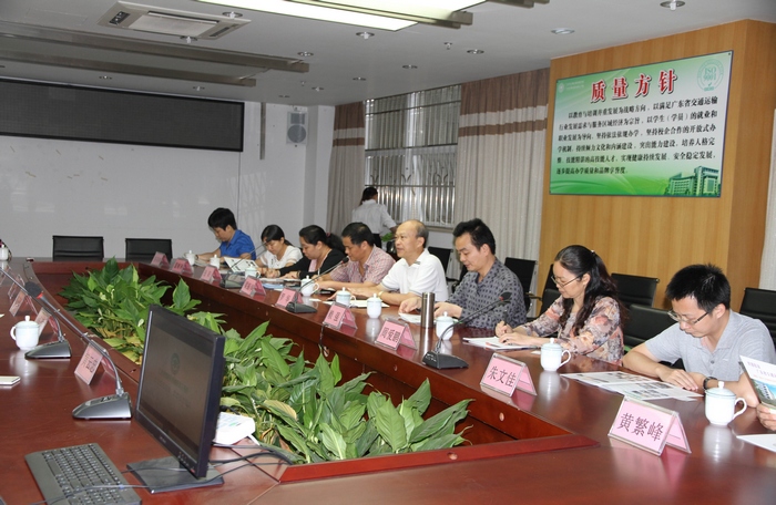 该院阎子纲院长、主管教学的刘珺副院长和教务处黄云忠主任、教研处李新梅主任、路桥系李朝晖主任、办公室罗小青主任及两名路桥类的骨干教师参加了座谈、讨论与交流。阎子纲院长和我们分享了该院的专业设置情况、一体化教学改革和示范校建设的经验,详细讲解了该院的水、陆、车、船等四大专业结构的建设,并就物流、路桥、汽车、内河船舶等重点专业群以行动导向教学法的一体化教学进展及所取得的成果给我们做了全面展示。同时就推进教学改革,示范校建设期间机制建设、人才培养方案制定、课程资源开发、师资队伍建设、评价模式改革等工作开展步骤、示范校验收的程序和资料准备工作做了全面的介绍。该校是全国第二批国改示范校,并已通过相关部门及专家的验收。我院罗书记也向广东省交通运输技师学院在座的领导和老师简单介绍了我院的概况、专业设置情况及办学成果,同时真诚地邀请广东省交通运输技师学院的领导和老师们在合适的时间里到我院传经送宝。