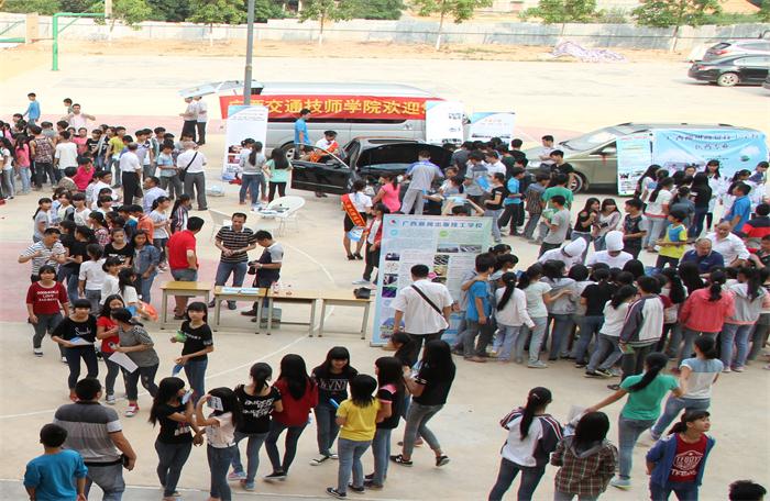 据悉,为了扩大技工院校的宣传力度,使得更多的人认识技工院校,激发学生学习技能的兴趣,本年度自治区人社厅还首次举行了技能展示进校园活动。各个技工院校使出了十八般武艺,吸引了浦北县第五中学大量学生的围观。