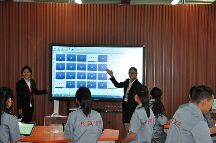 本次论坛的第一个议程,来自全区技工院校的骨干教师观摩了罗莎、韦欣烜老师的《货物验收》示范课课堂上教师与学生展示了信息化环境下交互授课、移动授课、实时互动、即时测评的理实一体化课程形式。