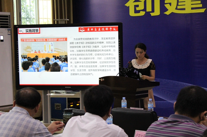活动现场,我院展示的德育特色学校创建成果内容丰富,得到了广西技工教育研究室曾文副调研员和兄弟院校的肯定,我院自编的特色教材《幸福延伸》、《学生情商教育训练教程》更是得到了大家的一致好评。同时,曾文副调研员也对我们下一步的德育特色学校创建工作给予了宝贵的意见,希望我院的德育特色学校创建工作更深入,更广泛地开展。
