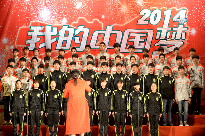 2013级装饰2班与2013级酒店管理合班演唱曲目《共青团之歌》
