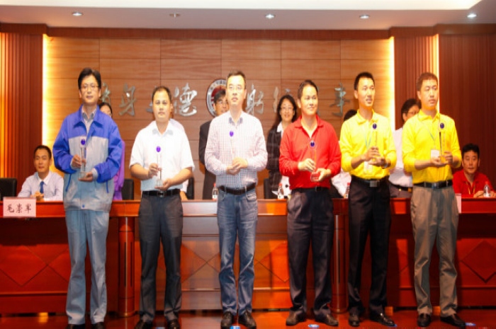 团体一等奖颁奖仪式(右三为梁振华副主任,右二为梁海明老师,右一为王尧飞老师)
