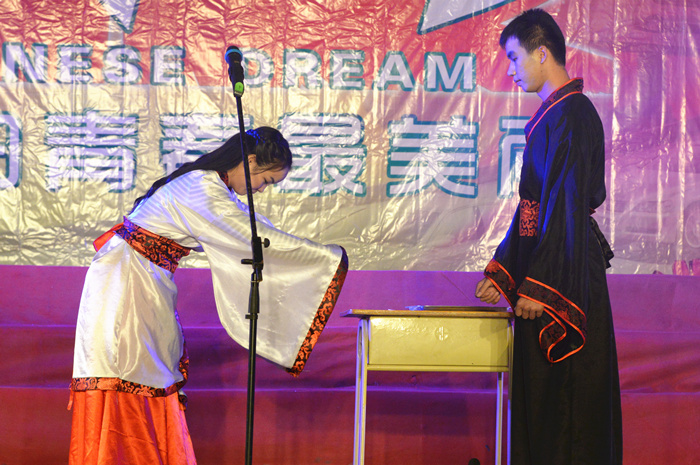开幕式上,共有12支队伍参与学生《弟子规》诵读竞赛决赛的角逐。整齐洪亮的朗读声,富有创意的情景表演和优美动人的舞蹈赢得观众们的热烈掌声。
