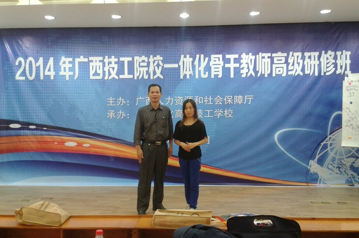 11月1日至11月9日,我院信息与商务系的李作堂、李光红两位教师参加了由自治区人力资源和社会保障厅主办,广西石化高级技工学校承办,为期9天的2014年广西技工院校一体化骨干教师高级研修班。