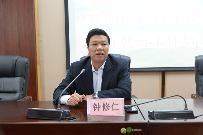 11月8日上午,由自治区人力资源和社会保障厅主办,我院承办的2014年广西技工院校社会主义核心价值观班主任培训班在我院信息中心四楼举行了隆重的开班仪式。自治区人力资源和社会保障厅职业能力建设处熊艳副处长、自治区人力资源和社会保障厅职业能力建设处陈振成教授,自治区党校党史党建教研部覃翠生教授,我院钟修仁院长及相关部门负责人出席了开班仪式。
