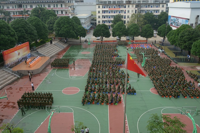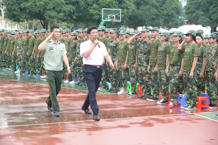 会上,广西武警一支队队长覃振周对本次军训会操进行了总结,他在总结中说,在为期五天的军训中,同学们都能够服从教官的管理,听从教官的指挥,能够艰苦奋斗,吃苦耐劳,展现出了应有的精神风貌。他希望同学们把这种精神带到今后的学习生活中,以高标准,严要求来规范自己,努力做一名品学兼优的好学生。