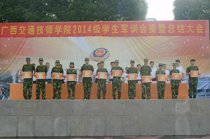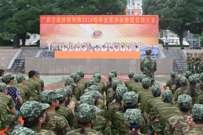 广西交通技师学院2014级学生军训会操暨总结大会现场