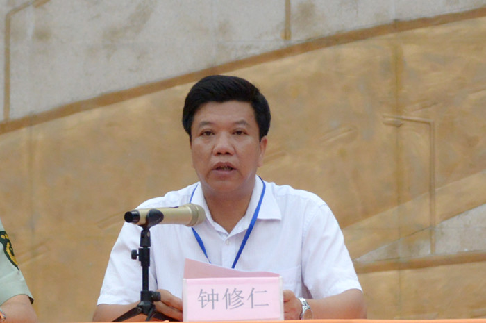 钟修仁院长代表学院对广西武警一支队官兵的到来表示欢迎和感谢。他说,在高等院校、高级中学和中职学校开展军事训练,是党中央、中央军委从加强国防后摆力量建设出发作出的战略决策。通过严格的军事训练,提高学生的政治觉悟、激发爱国热情,培养艰苦耐劳的坚强毅力和集体主义精神,增强国防观念和组织纪律性,养成良好的学风和生活作风,掌握一定的军事知识和技能,进一步增强建设祖国、保卫祖国的使命感和责任感,为同学们的学习生活乃至今后的健康成长打下一个良好而坚实的基础。他还对新生提出五点要求:一是要做好思想准备工作,把自己当成一名真正的军人来看待,以军人的身份严格要求自己,自觉接受一次人生的正规训练;二是要严格遵守纪律,坚决服从教官的安排,听从教官的指挥,练好每一个动作;三是要发扬革命前辈吃苦耐劳的精神,不怕流汗,不怕炎热,不怕一切困难,以高标准,严要求来约束自己;四是要尊敬教官,做到有事先报告再请假,服从教官统一部署;五是要集体荣誉感,加强团队意识,个人服从集体,讲纪律,不拖拉,不无故缺席。