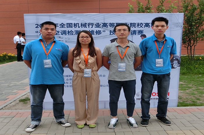2014年全国机械行业高等职业院校“汽车空调检测与维修”技能邀请赛,于6月18日至20日在长春汽车工业高等专科学校举行。来自全国28个省市学校的57支参赛队进行角逐,我校选手韦经诚、黄星璋在本次比赛中的分获二等奖和三等奖。