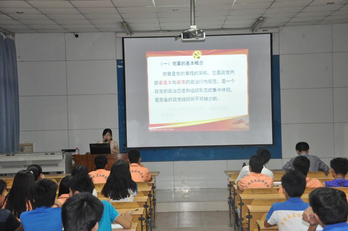 为进一步贯彻落实《转发<关于印发在全区实施发展党员“源头工程”的意见>的通知》(交直党〔2013〕35号)文件精神,拓宽发展党员源头,加大发展青年党员力度,提高发展党员质量,建设高素质的党员队伍,6月9日至11日,我院在2教阶梯教室举办2014年第二期入党启蒙教育培训班。学院党校三位老师李 毅、李春生、龙思睿分别以《社会主义核心价值观》、《十八届三中全会精神、群众路线基本知识》、《党章党史基本知识》为主题进行启蒙教育。我院递交入党申请书的11名教职工和64名优秀学生干部参加了此次培训班。