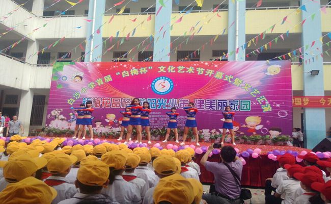 2014年5月30日我院学生社团啦啦操协会在团委杨霜老师的带领下来到南宁市江南区白沙小学参加“携手圆梦 温暖同行”关爱农民工子女活动暨白沙小学首届“白梅杯”校园文化艺术节活动。