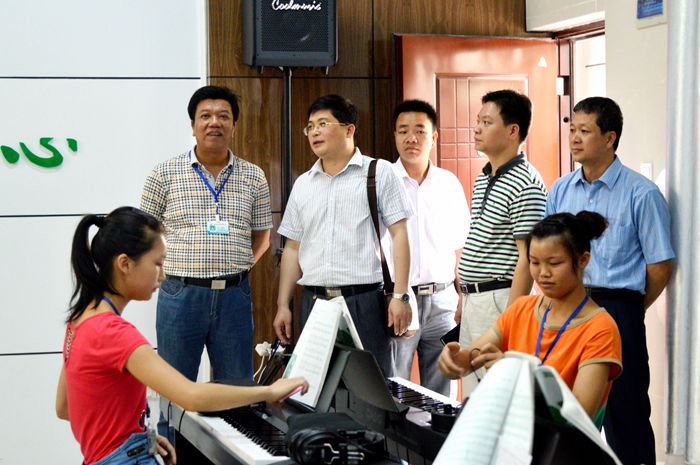 广西石化高级技工学校一行参观我院声乐实训室