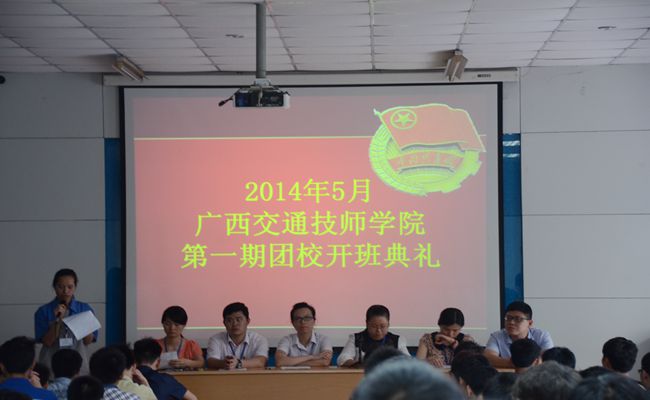 5月12日晚,我院团委在阶梯教室举行了2014年第一期团校开班典礼。团委书记李姜春老师、团委副书记甘麒燕老师、文体委员罗万庆老师、团委杨霜老师、学生工作处年级主任孙广福老师、学生工作处黄炜老师出席,181名递交了入团申请书的同学参加。开班典礼由团委副书记甘麒燕老师主持。