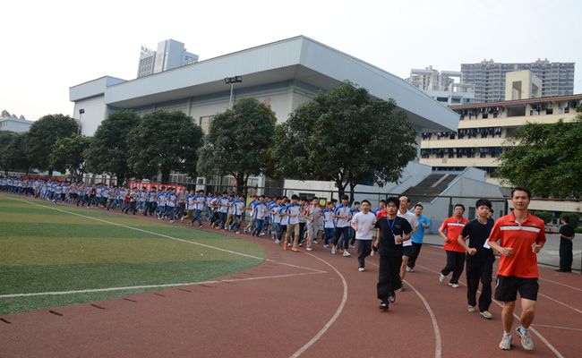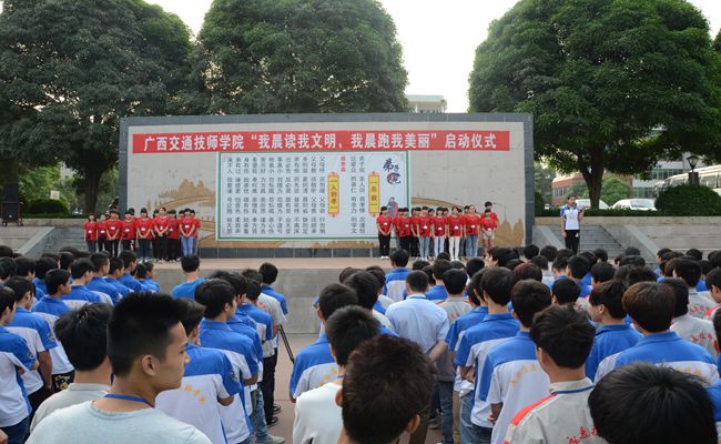 最后,出席仪式的领导们和13级同学在体育老师的带领下开始了晨跑活动,11、12级同学在广播站同学的带领下朗诵《弟子规》。