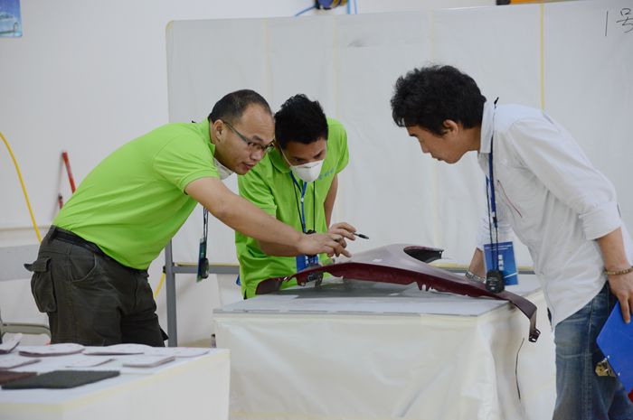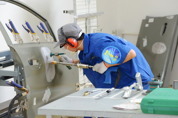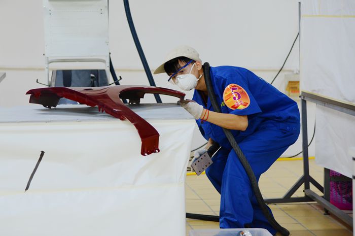 我院选手林剑波进行汽车涂装竞赛子项目——损伤处理