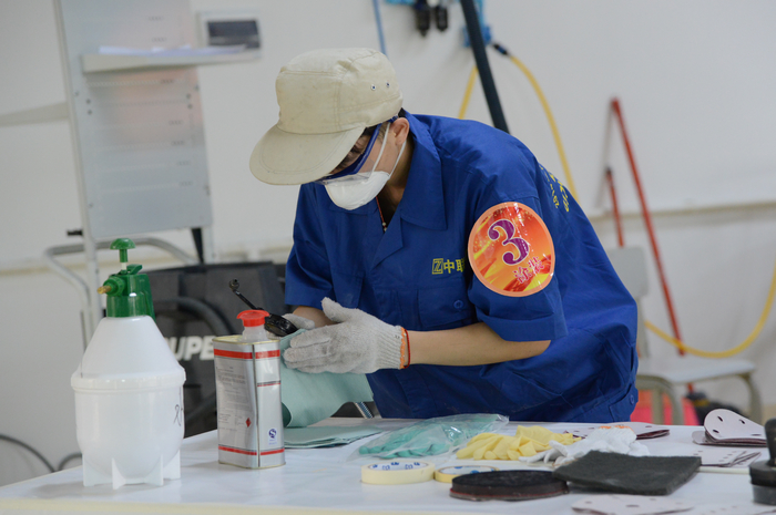 4月22日至23日为期两天的第九届(2014年)广西中等职业学校技能大赛“汽车涂装比赛”在我院顺利举行,我院选手2012级涂装班林剑波与来自全区6所不同院校的学生同台比拼,经过“损伤处理”、“中涂底漆”、“面漆前处理”、“调色”以及“面漆喷绘”等五个子项目的激烈角逐,最终夺得了汽车涂装比赛总分第一名。