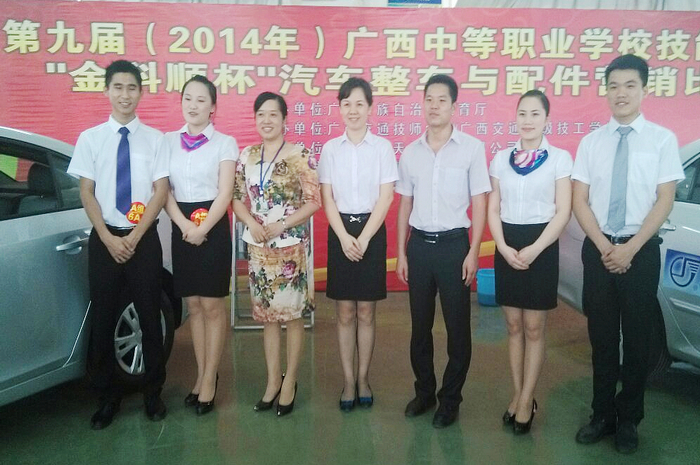 在4月21日结束的第九届(2014年)广西中等职业学校技能大赛“金科顺杯”汽车整车与配件营销比赛中,我院参赛选手与来自全区22所院校共88名学生同台竞技,最终夺得了汽车整车与配件营销比赛总分第一名,并且在“汽车整车与配件营销知识”、“汽车整车与营销基本流程操作”、“汽车整车销售综合技能”等四个子项目均获得第一名。