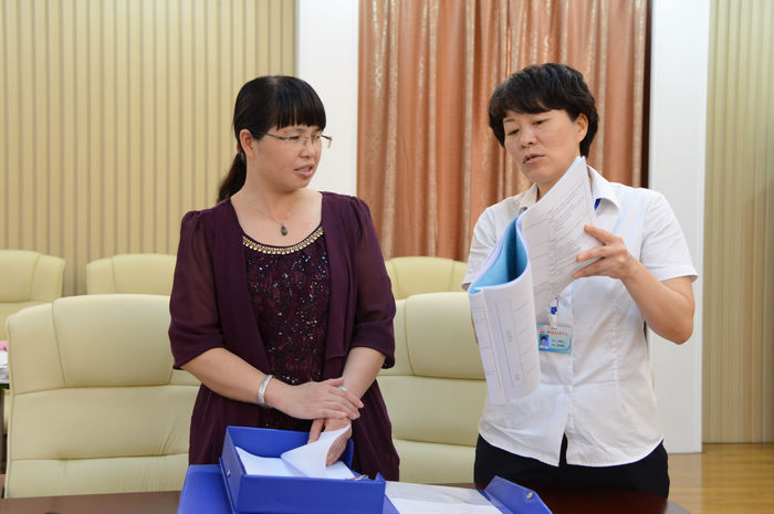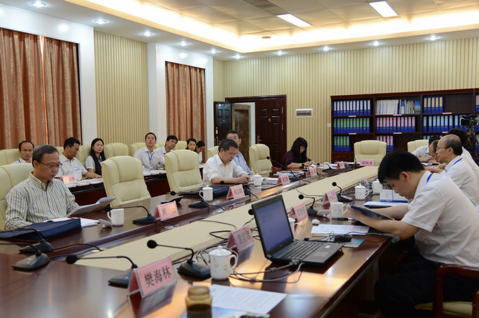参观结束后,我校国家示范校建设工作汇报会在办公楼六楼会议室举行,学校全体中层以上领导参加了会议。我校党委书记罗华分别从项目建设总体情况、建设工作机制与举措 、项目建设进展、建设经费投入与使用、贡献与示范、典型案例以及存在问题及改进措施等七个方面对我校示范校建设的总体进展情况进行了汇报。四个重点建设专业和两个特色项目负责人也依次就各项目建设情况进行了简短汇报。在听取工作汇报之后,检查组就“学校重点专业项目建设及特色项目建设预期目标任务完成情况”、“中央资金使用情况和配套、自筹资金落实情况”、“质量检测数据情况”以及“示范校建设网站筹备情况”等进行了仔细检查,详细审阅了示范校重点建设专业以及特色项目建设的总结报告和各项材料,深入检查学校示范校建设工作进展情况,并与学校领导、职能部门负责人、各项目负责人进行交流与指导。
