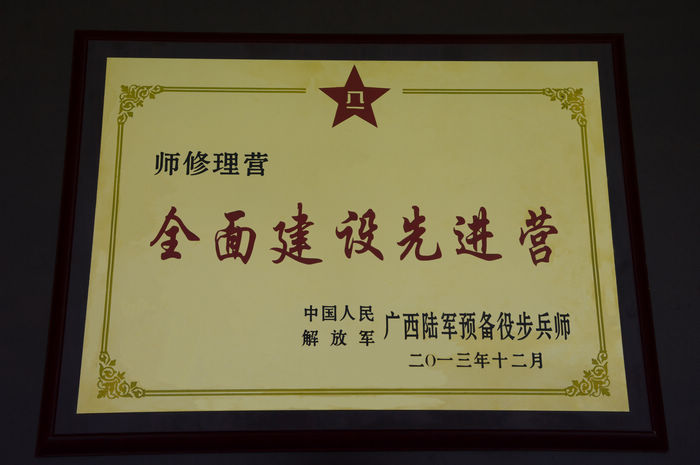 我院作为广西陆军预备役步兵师修理营,2013年工作得到了上级部门的充分肯定,荣获“全面建设先进营”。