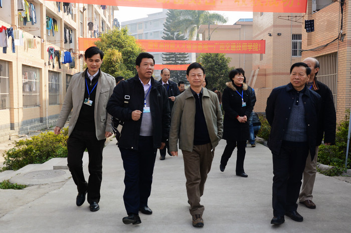 2013年12月31日上午,自治区交通运输厅总工程师王劼耘、科教处处长岑春,自治区道路运输管理局孙永生书记等一行深入我院高峰校区、伊岭校区视察,详细了解两个校区的建设和学生的学习生活情况。学院院长韦红教,党委书记罗华,副院长陆天云、钟修仁、关菲明,院长助理谭劲涛、郑超文以及相关部门中层领导陪同视察。