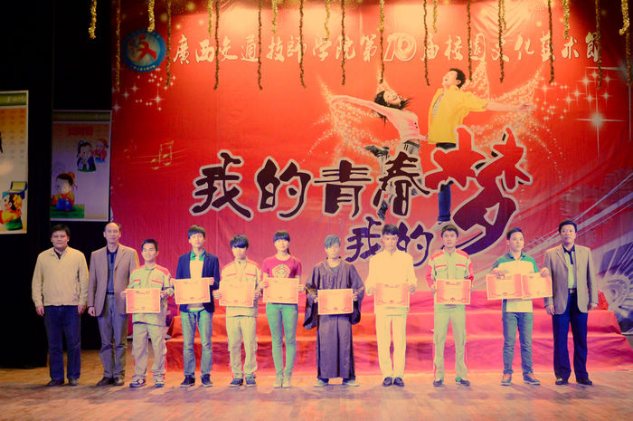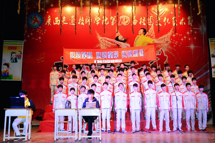 12月5日晚,我院第十届校园文化艺术节在学院大礼堂拉开帷幕。自治区人力资源和社会保障厅技工教育教研室副调研员曾文,学院韦红教院长、罗华书记、钟修仁副院长、关菲明副院长、谭劲涛院长助理出席开幕式,并为当晚《弟子规》朗诵竞赛获奖的班级颁奖。开幕式由钟修仁副院长主持。