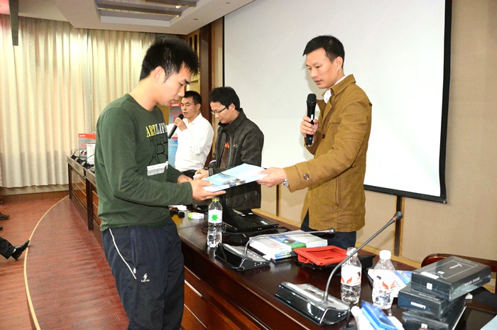 南宁旭海商贸有限公司经理徐朝华向与会人员赠送车云诊断技术书籍
