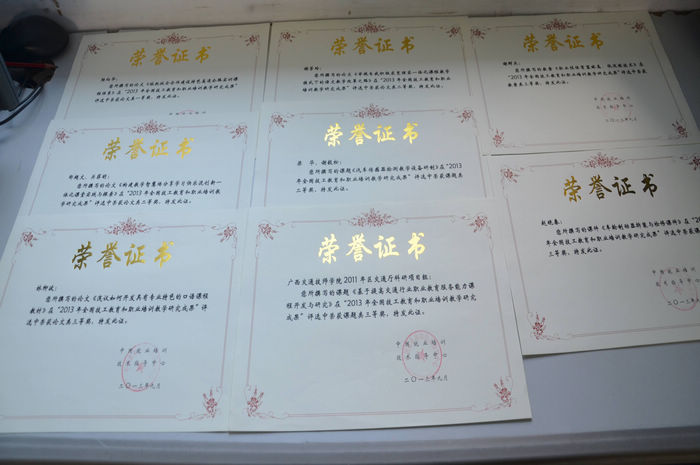 近日,由中国就业培训技术指导中心组织的“2013年全国技工教育和职业培训教学研究成果”评选活动圆满结束。我院报送《依托校企合作建设特色高速公路实训课程体系》、《构建教学智慧场分享学习快乐流创新一体化课题实践与探索》等参赛作品经过初评、复评环节,最终获得8个奖项。其中论文类荣获1个一等奖、2个二等奖、1个三等奖;课题类荣获二、三等奖各一个;教案类和课件类各荣获1个三等奖。