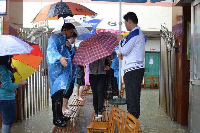 11日上午,持续不断的强降雨致使我院主干道受阻,部分宿舍一度进水。学院采取四项措施积极应对:一是及时启动应急预案,第一时间将内涝情况上报主管部门,请求南宁市政府支援,并启用学院提前准备好的两台大功率抽水机进行排涝,为抗灾赢得宝贵的时间。二是根据天气和受灾情况,及时停课和疏散学生,学院领导深入受灾第一线,组织学生安全撤离。三是学院领导亲自到学生宿舍安抚学生,并协调做好学生就餐保障工作,保障学生正常就餐,确保学生情绪稳定。四是加派人员值班巡逻,重点监控学生宿舍、教学实训基地等区域,不定时检查排涝相关设备,将灾害损失降低到最低限度。
