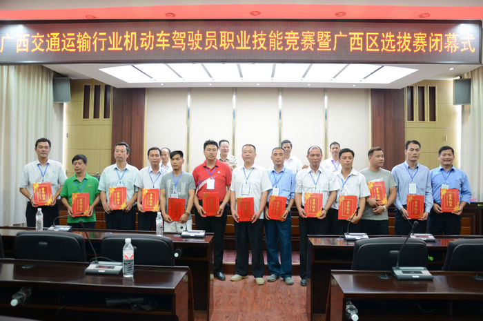 经过两天的激烈角逐,广西驰骋汽车运输有限责任公司的冯启民、广西钦州秦禾运输集团有限责任公司的周凤鸣、广西通泰汽车运输(集团)有限公司的黄礼光从众多选手中脱颖而出,分获此次竞赛前三名。他们将作为备选人员,通过下一步的严格培训后再次筛选出两位选手代表广西参加2013年全国交通运输行业“金龙龙翼杯”机动车驾驶员职业技能竞赛。