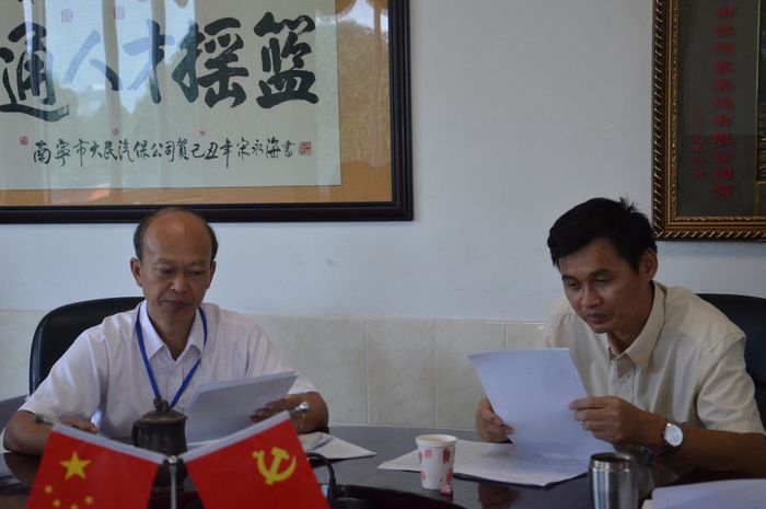 党委书记罗华、院长韦红教认真阅读群众所提意见建议
