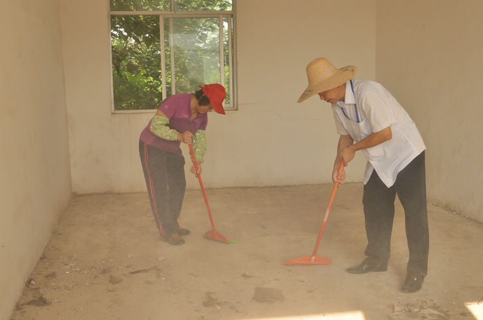 教师们在打扫教室